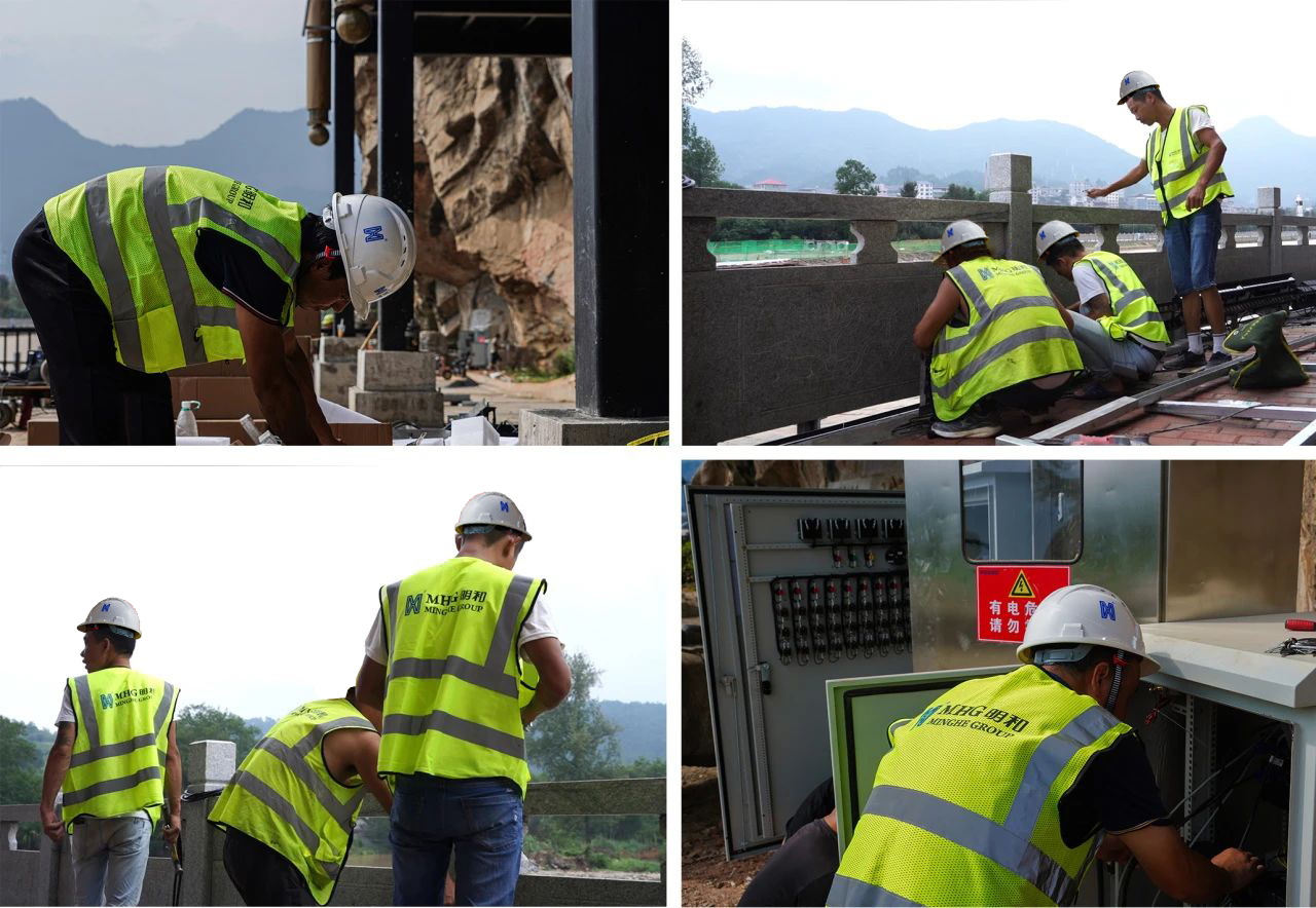 水面施工期間,恰逢雨期,水流湍急,施工難度再次升級。古建筑歷史悠久,保護難度大,危險系數直線上升。崖壁下開辟舞臺,架設鋼結構、安裝舞臺機械,工程量更是空前巨大。918博天堂團隊“逢山開路,遇水搭橋”,憑借著堅定的信念和頑強的毅力,將難題一一攻克,短短的45天,用實際行動撕掉了“難題”的標簽。